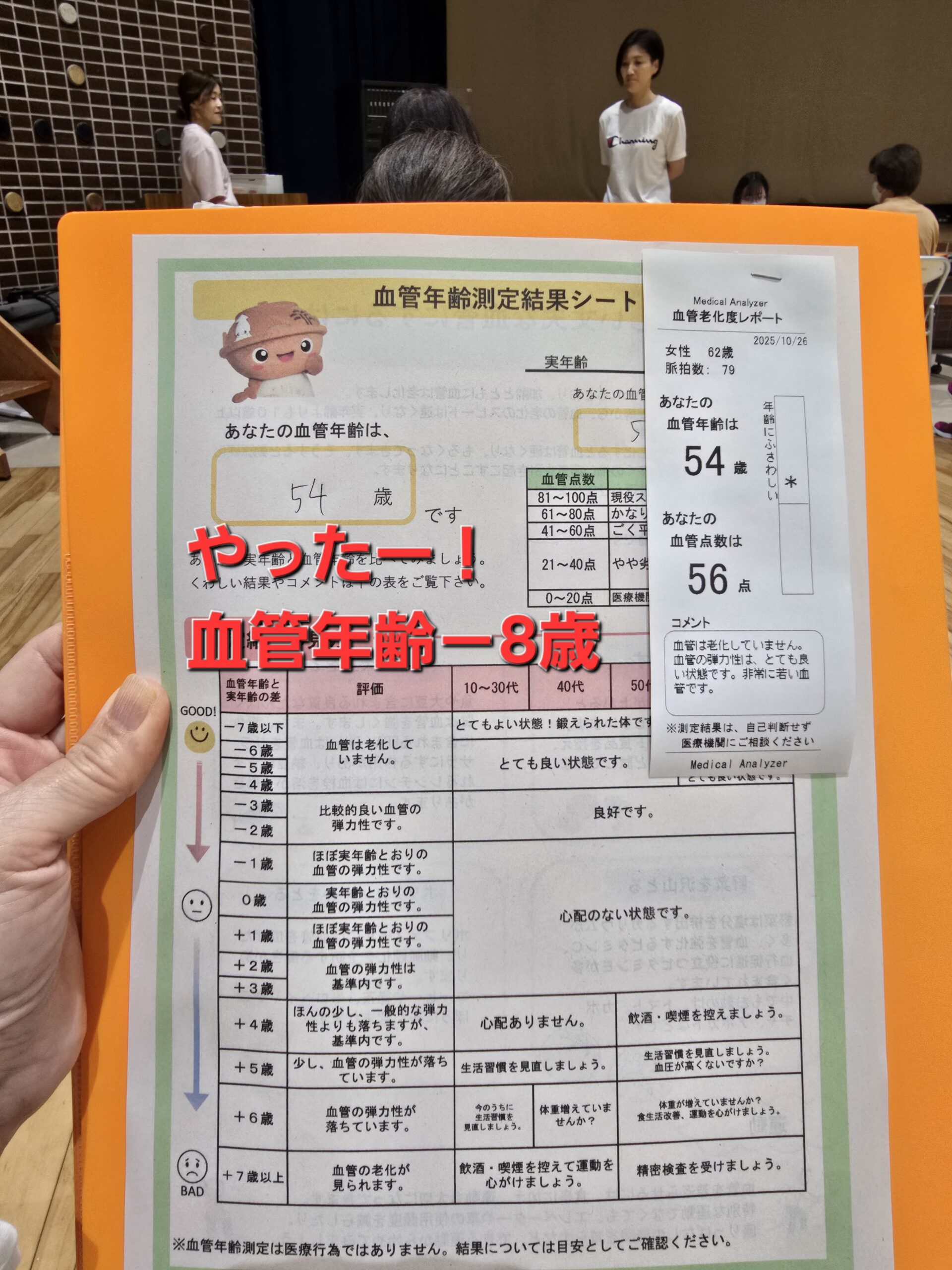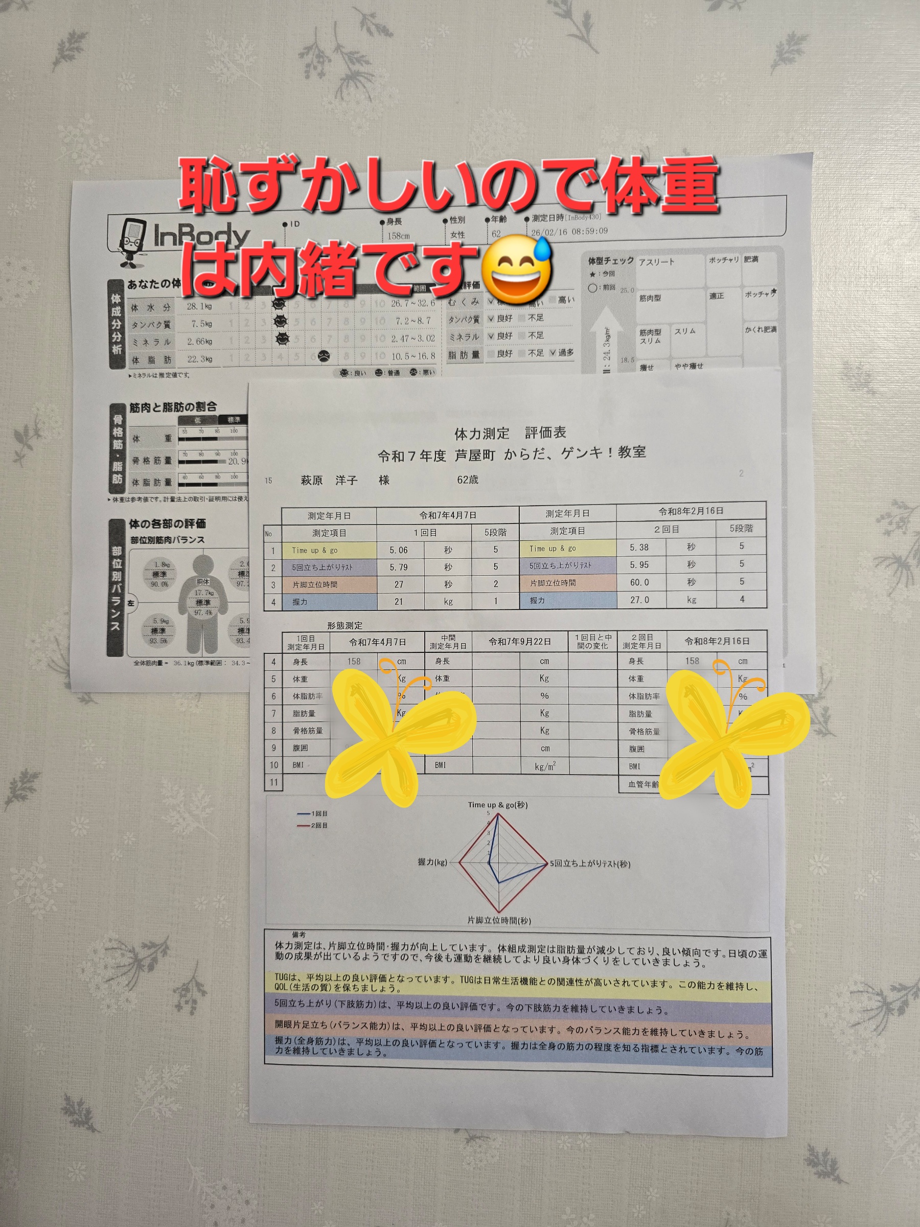 さて、今日の午前中は「からだ、元気!教室」でした。少し前に、1年間の頑張りの成果を見る最終測定があり、今日はその結果をいただきました。