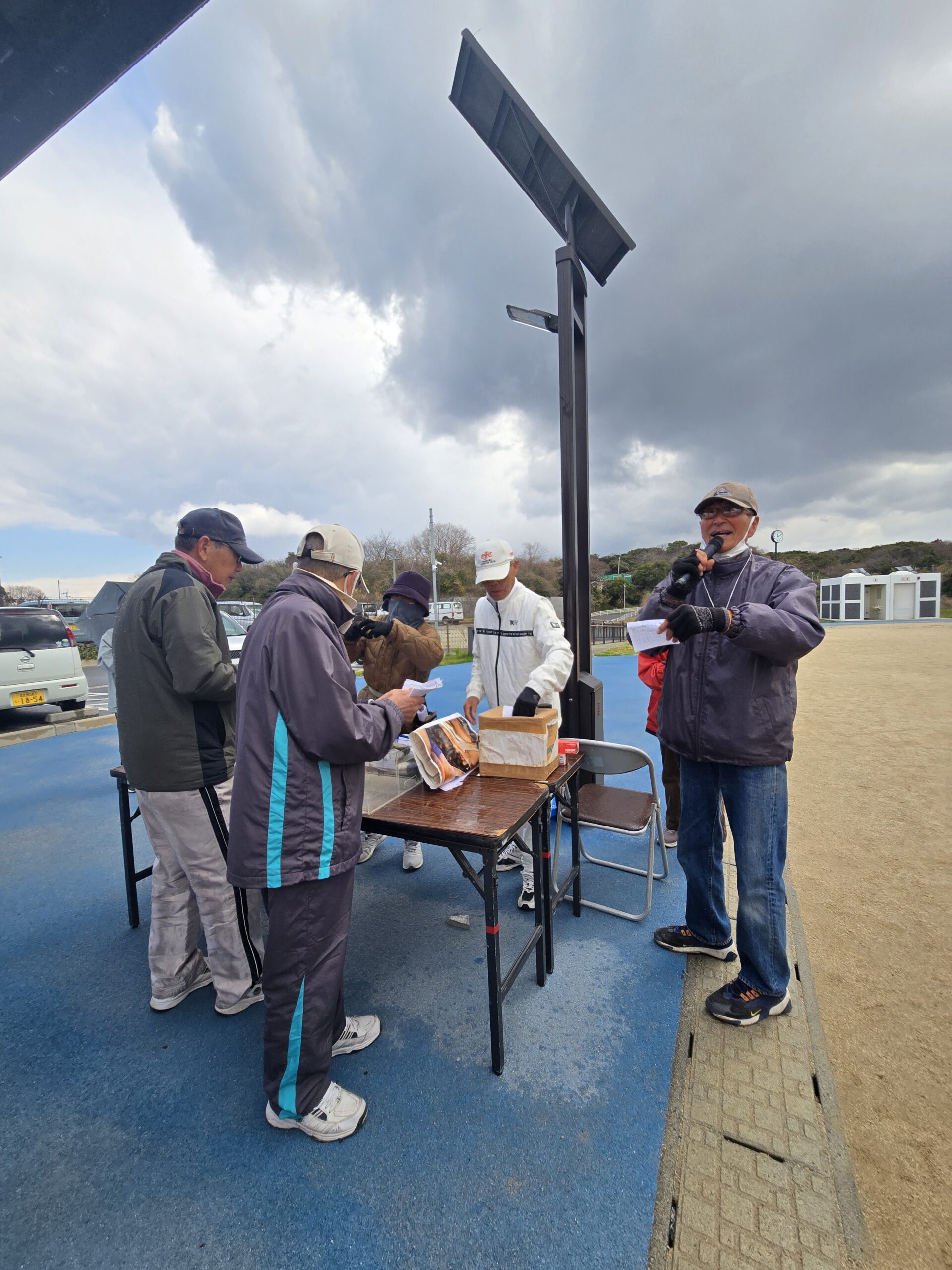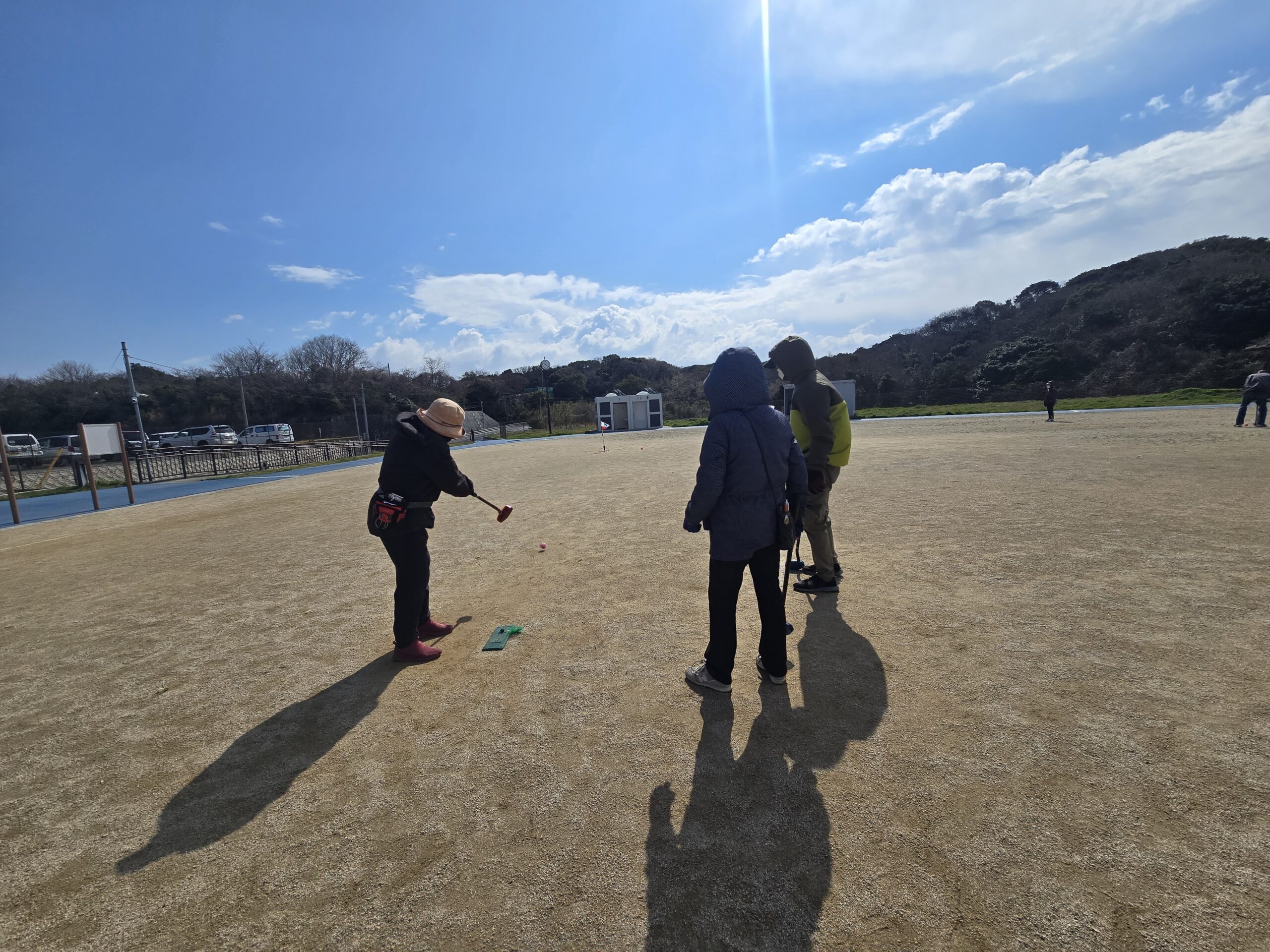 さて、今日の午前中は芦屋町グラウンドゴルフ協会主催の加盟クラブ交流大会に出場しました。受付が8時30分からのため、みまもり隊の活動を少し早めに切り上げて、アッシーグラウンドに向かいました。