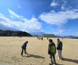 さて、今日の午前中は芦屋町グラウンドゴルフ協会主催の加盟クラブ交流大会に出場しました。受付が8時30分からのため、みまもり隊の活動を少し早めに切り上げて、アッシーグラウンドに向かいました。